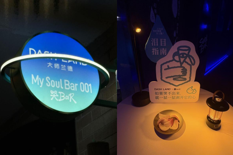 以上这些关于“精神自愈”的心理动因,在 “My Soul Bar” 打造的 7 家酒馆中得到了具象化的空间承载。从上海陕康里“哭 Bar”(Soul Bar 001)中由洋葱构成的“安全出口”,到成都南路“发疯 Bar”(Soul Bar 003)那块允许“理性失控”的宣言黑板,Soul 正在为年轻人划定一块社交自留地。